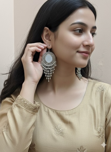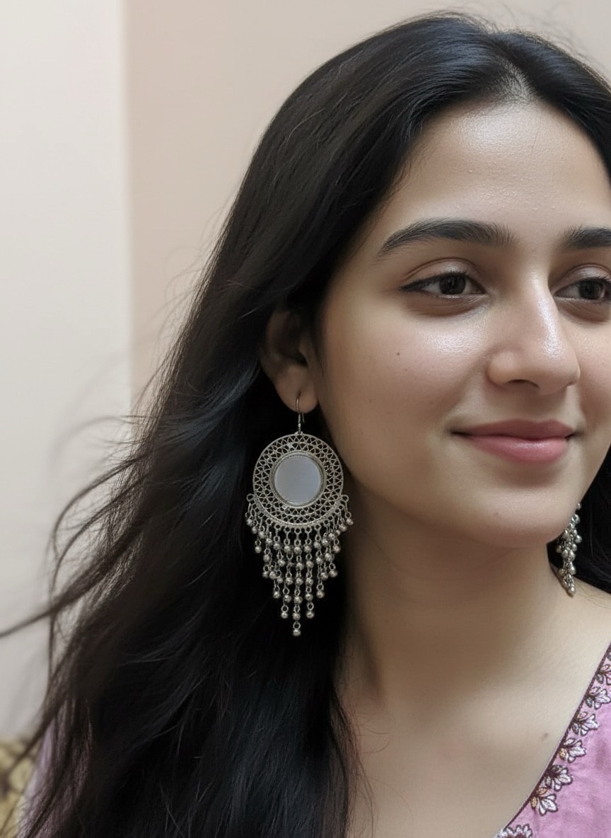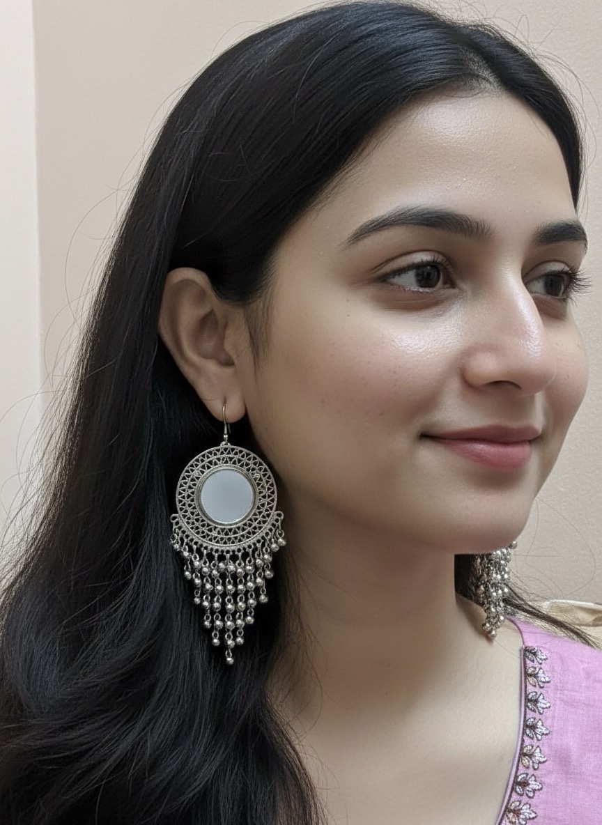 Embrace the rich heritage of traditional Indian jewellery with our exquisitely designed oxidised jhumkas. Crafted by skilled artisans, each pair features intricate carvings, a classic dome silhouette, and a beautiful antique silver finish that enhances its vintage charm. The lightweight construction ensures all-day comfort, while the timeless design makes it suitable for festive celebrations, weddings, cultural events, or everyday ethnic wear. A perfect accessory to complement sarees, kurtis, lehengas, or Indo-western outfits.