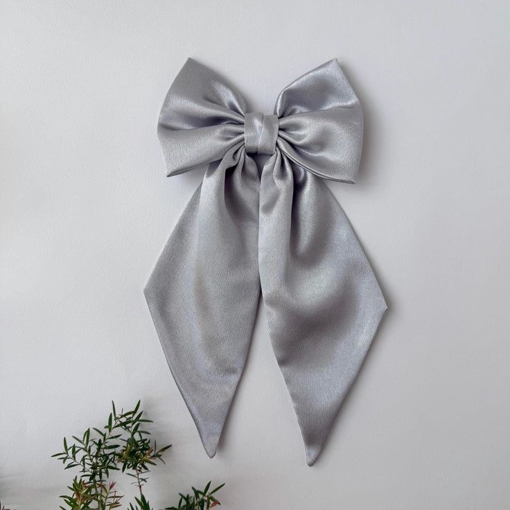 Premium silk satin Hair Bow with Long tail - GreyPremium silk satin Hair Bow with Long tail – Grey